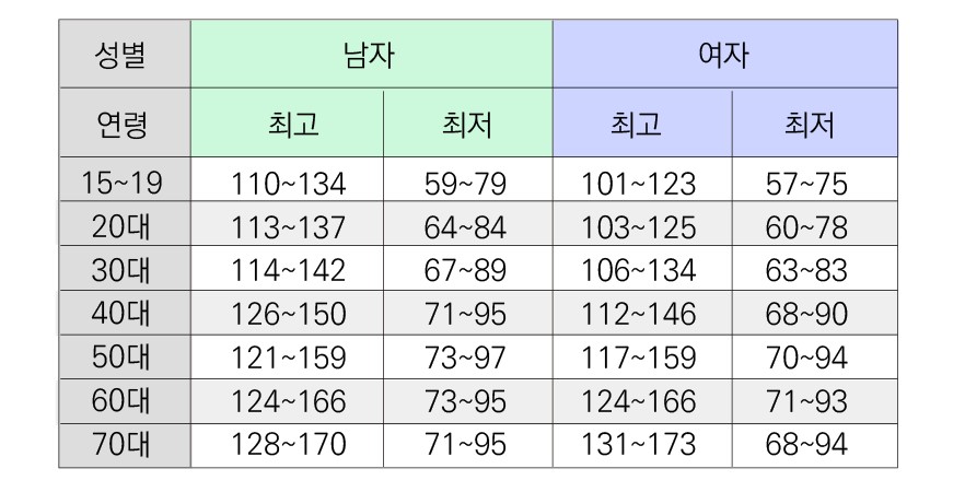 일반적으로 성인 정상혈압 범위 수치는 수축기가 90~120mmHg에 포함되어야 하고 이완기는 60~80mmHg 정도입니다. 꼭 체크하세요!