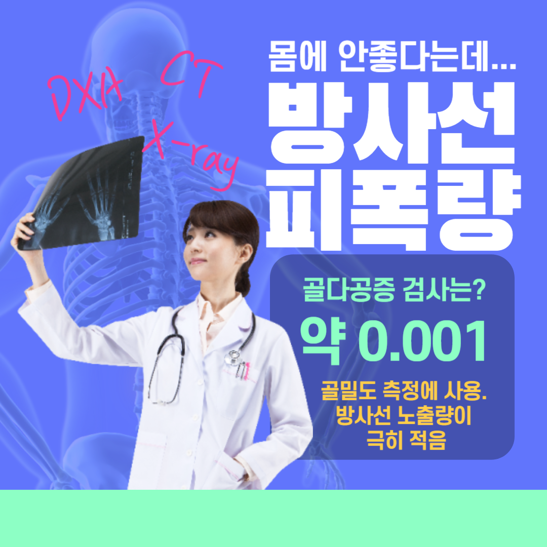 | 골다공증 검사 (DXA) | 약 0.001 | 골밀도 측정에 사용. 방사선 노출량이 극히 적음 |