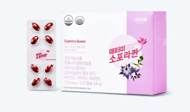 - 주요 성분: 회화나무 열매 추출물, 대두 이소플라본,감마리놀렌산,비타민 D,비타민 E,비타민 K,소포리코사이드