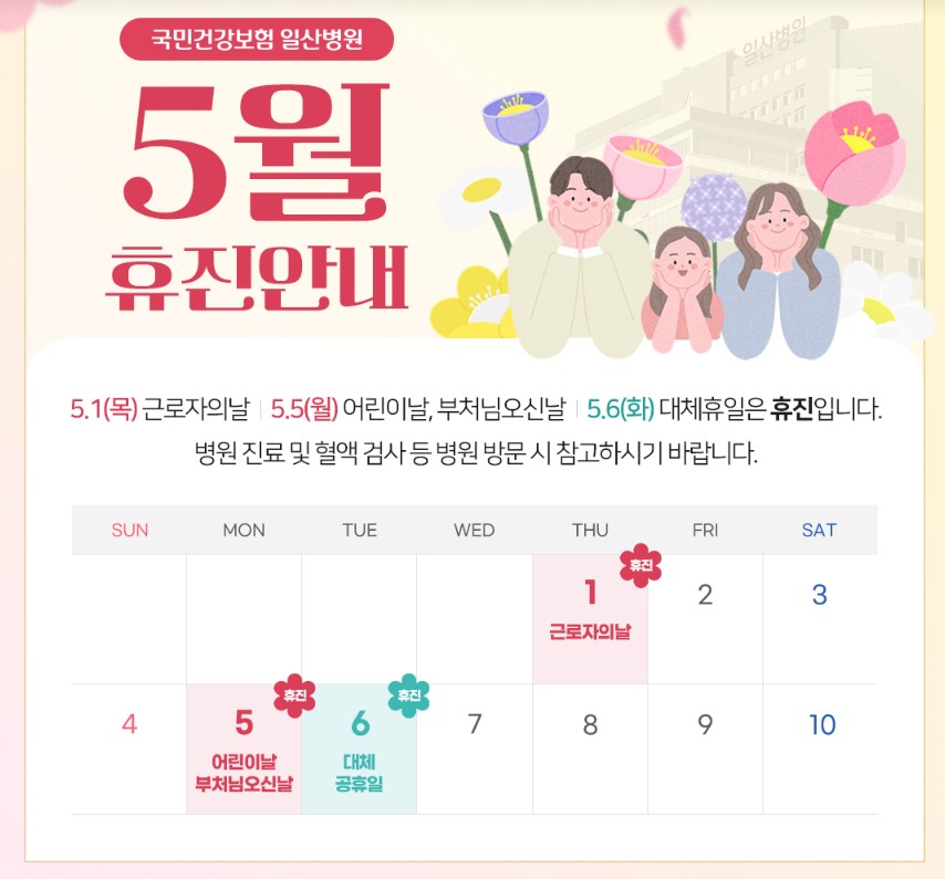 ✔️ 2025년 5월 1일 근로자의 날, 고양시 일산동구 문 연 병원과 약국 정보는 꼭 미리 확인해서 혹시 모를 상황에 대비하세요! 모두 안전하고 건강한 하루 보내시길 바랍니다 😊