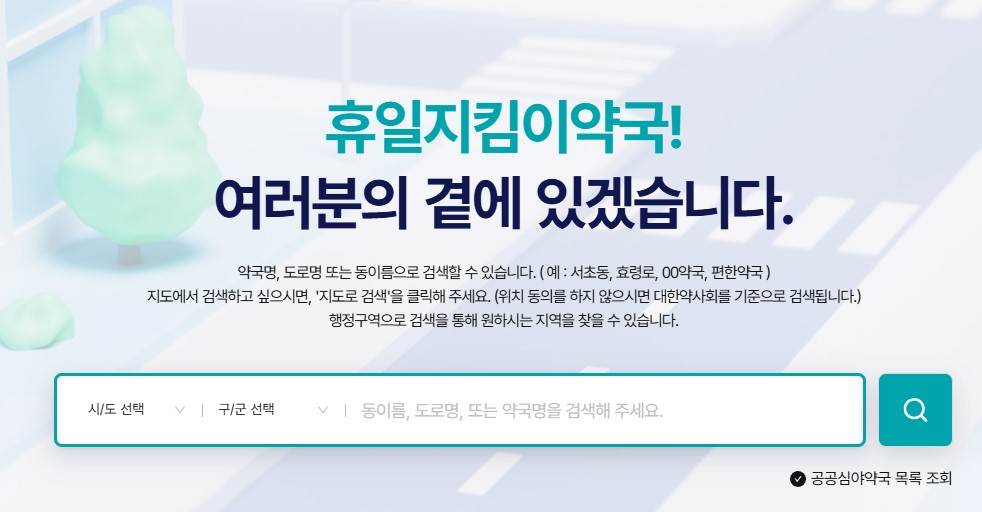 1. 공휴일에도 운영하는 약국 검색