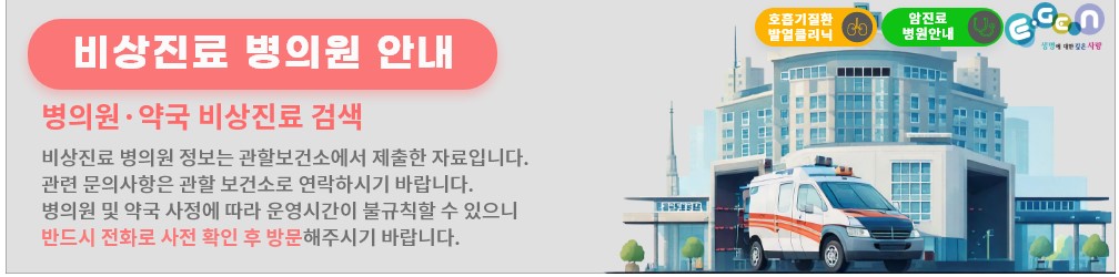 - 💊 약국: 우리동네약국 또는 E-Gen으로 실시간 검색!